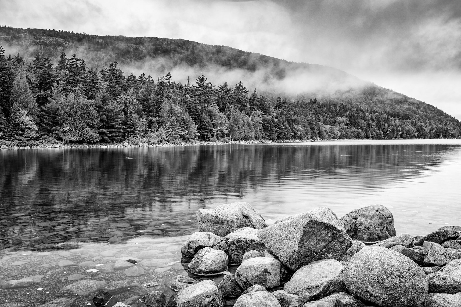 Rocks, Lake & Fog Black & White